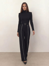 La combinación del cuello alto con el pantalón de talle elevado aporta un aire moderno y atemporal a la vez. Es una prenda ideal para looks urbanos cuidados, eventos especiales o incluso estilismos de oficina con un toque diferencial. Su diseño permite llevarlo tanto con tacones como con calzado más sobrio, adaptándose fácilmente a distintas ocasiones.