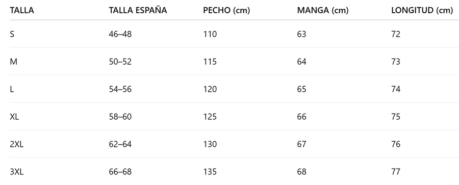 Guía de tallas