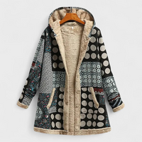 Su corte suelto y capucha amplia brindan una sensación acogedora, mientras que el cierre frontal y los bolsillos laterales aportan funcionalidad y practicidad. El contraste entre su exterior estampado y el interior de textura suave crea un look moderno y femenino.