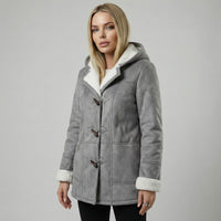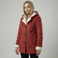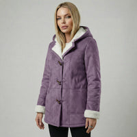 Este abrigo en combina calidez y estilo con un diseño inspirado en el clásico duffle coat. Su acabado aterciopelado y su interior completamente forrado en borreguito blanco aportan una sensación acogedora y suave, ideal para los días fríos. El color lila añade un toque femenino y moderno que convierte esta prenda en una opción única y sofisticada dentro del armario de invierno.