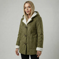 Los cierres tipo duffle con presillas aportan personalidad al diseño, mientras que la capucha amplia proporciona un extra de abrigo y protección. Los puños con vuelta de borreguito y la estructura recta favorecen una silueta equilibrada que mantiene comodidad y estilo en partes iguales. Cada detalle está pensado para crear una prenda funcional, cálida y visualmente atractiva.