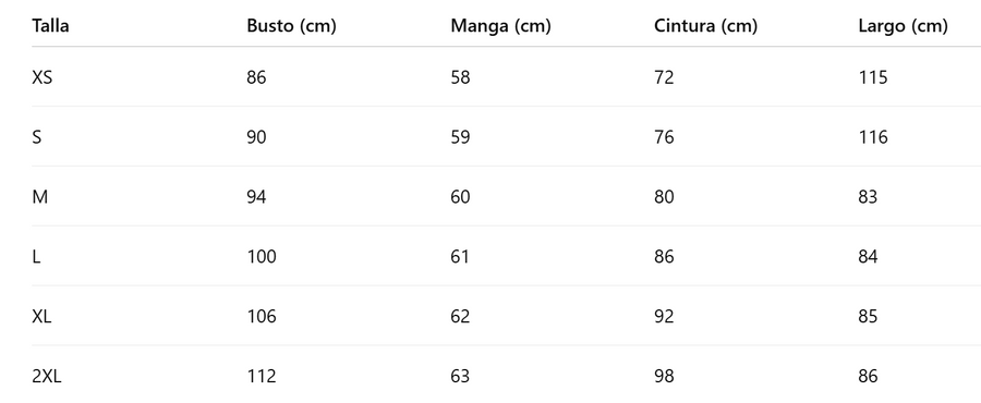 Guía de tallas