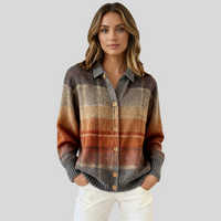 Este cárdigan de diseño cálido y artesanal combina a la perfección estilo y confort, convirtiéndose en la pieza ideal para la temporada otoño–invierno. Su patrón a cuadros en tonos tierra —naranjas, grises y beige— crea un efecto visual acogedor que añade un toque distintivo a cualquier outfit. La silueta ligeramente relajada ofrece un look moderno sin perder elegancia.