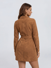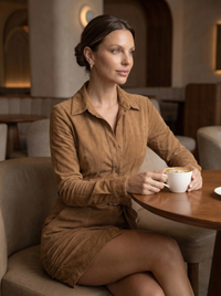 Este vestido camisero destaca por su silueta femenina y su carácter sofisticado, combinando elegancia y fuerza en una sola prenda. El diseño entallado, realzado por el cinturón a juego, define la cintura y estiliza la figura, mientras que el corte frontal aporta movimiento y un toque sensual sin resultar excesivo.