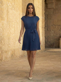 The dress you reach for when you don't want to think. The Pia is a lightweight pleated dress with cap sleeves, a round neckline, and a self-fabric belt that lets you define your waist exactly how you want it — cinched or relaxed.