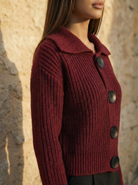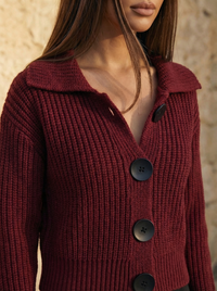 The statement piece your wardrobe has been missing. Our chunky knit cardigan in deep burgundy combines Italian-inspired craftsmanship with a modern cropped silhouette that flatters every figure.